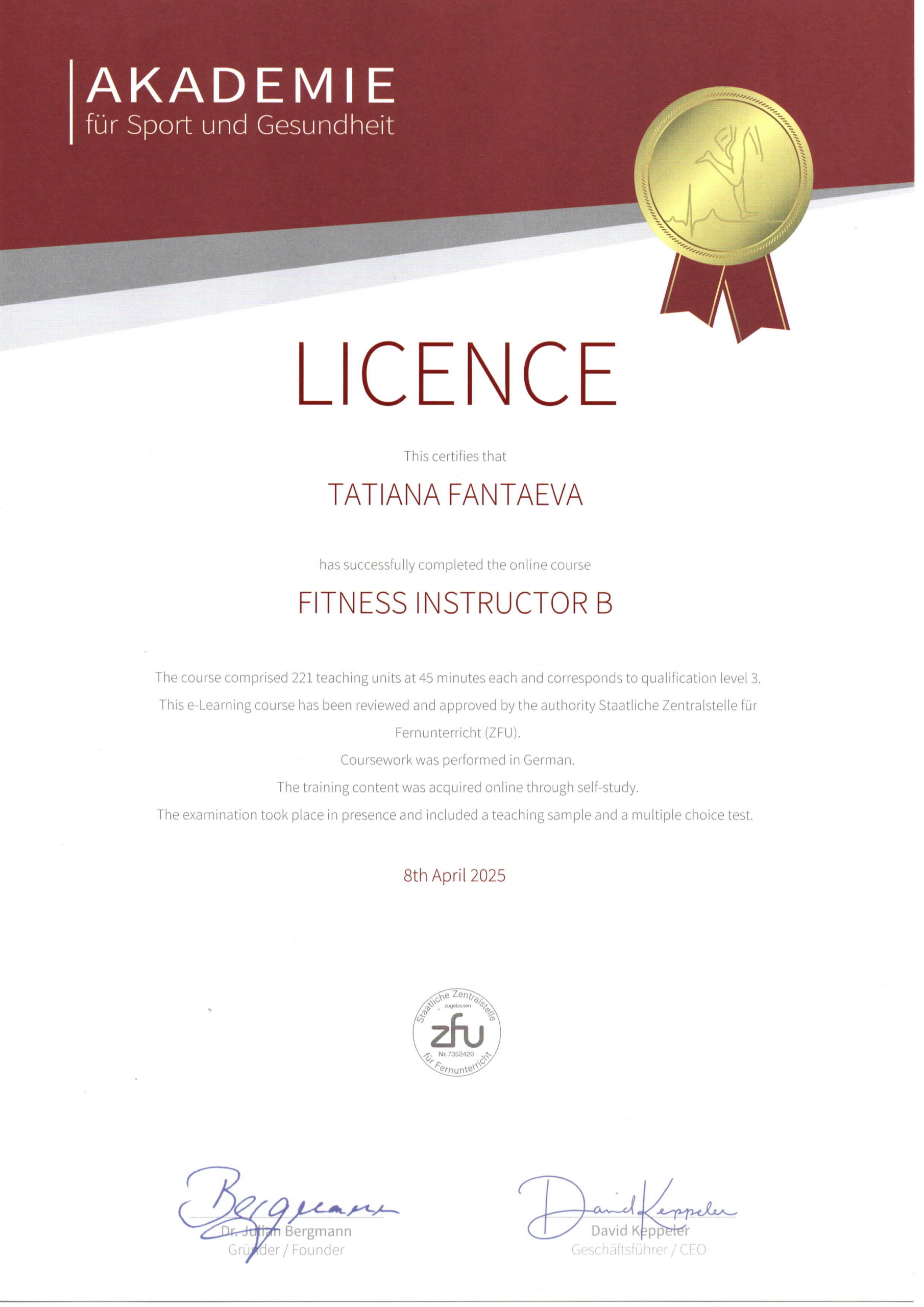 Фитнес-тренер международной квалификации категории В ASG (Германия)